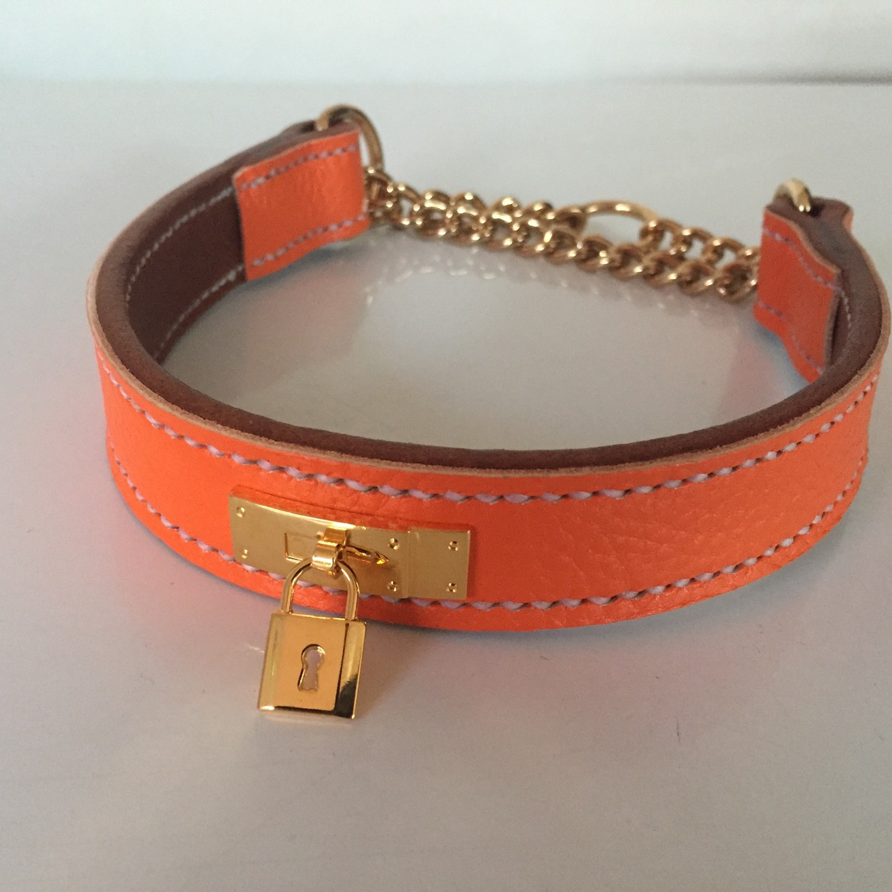 エル〇ス風ハーフチョーク首輪(ケリーバック調南京錠ゴールド)